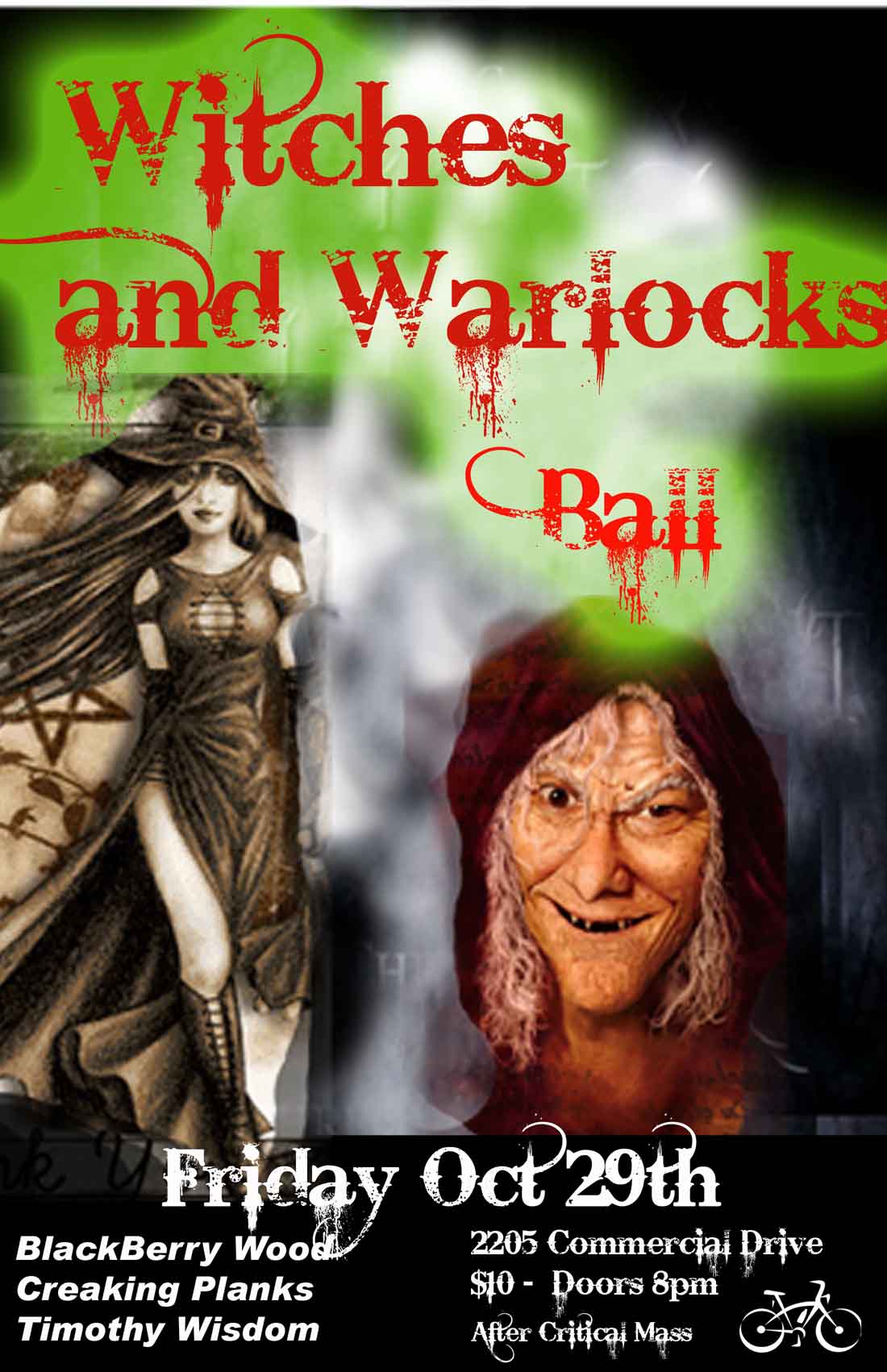 By: Witches, Warlocks, Incubuses and all other Halloween crittersWitches, Warlocks, Incubuses and other Halloween creatures that bump in the night. Our night to celebrate the powers of light and mostly the dark is upon us. The heretics known as the BlackBerry wood will lead us into a trance of dance madness. The curse of the Creaking Planks will begin the evening. The wizard known as Timothy Wisdom will cast spells until the late hours. Potions will be drunk, demons gate spells will be cast and humans (people who forget to come in costume) will be feasted upon.